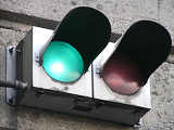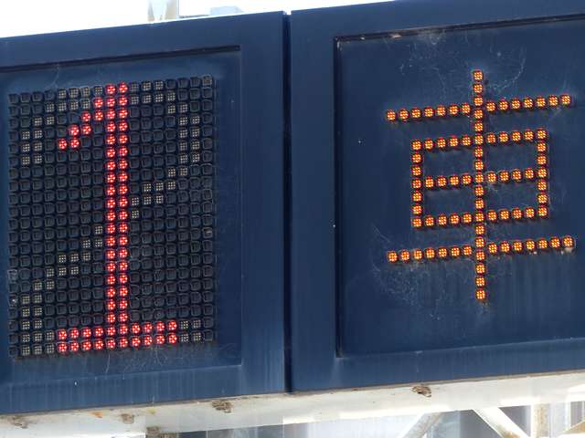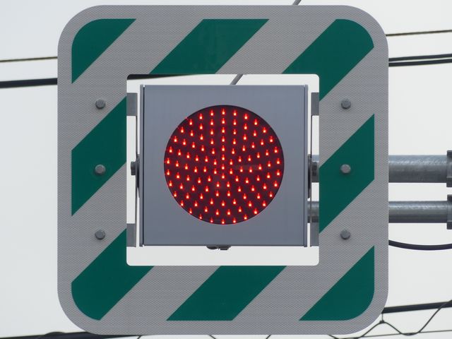 有料道路料金所の開閉表示として角型灯器の交通信号灯器が使用されています。