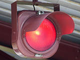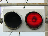 消防署の出口に設置された赤の1位式灯器です。通常は道路側が黄点滅、出口側が赤点滅となっています。緊急車両出動時に、道路側を赤信号とすると思われます。その際、出口側は赤点滅と思われますが、緊急車両は赤点滅の一時停止と歩道を横切るときの一時停止が不要となります。