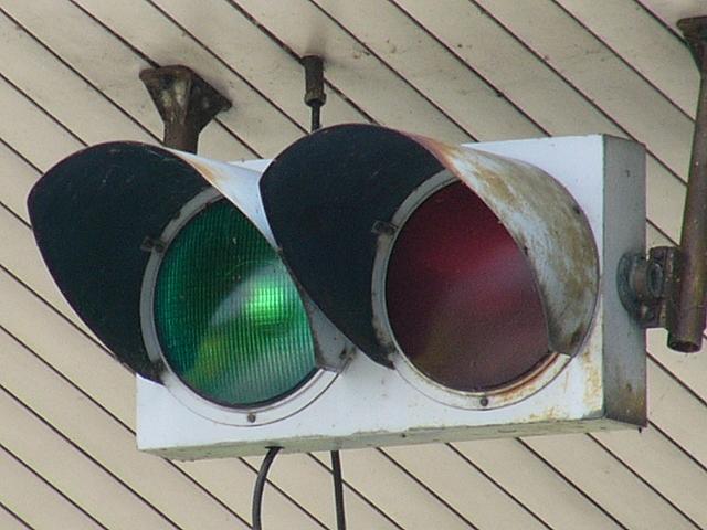 有料道路料金所の開閉表示として信号灯器が使用されています。塗りなおされているようで、フードの内側まで茶色で塗装されています。