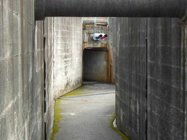 小特と軽車両以外の車両の通行が禁止されている鉄道ガード下の道路です。坂道とカーブが続き、見通しが悪いうえに、道路幅が狭く、小特や軽車両のすれ違いができないため、信号による交互通行になっています。交互通行用の灯器は2位式で、青からいきなり赤になります。