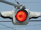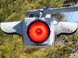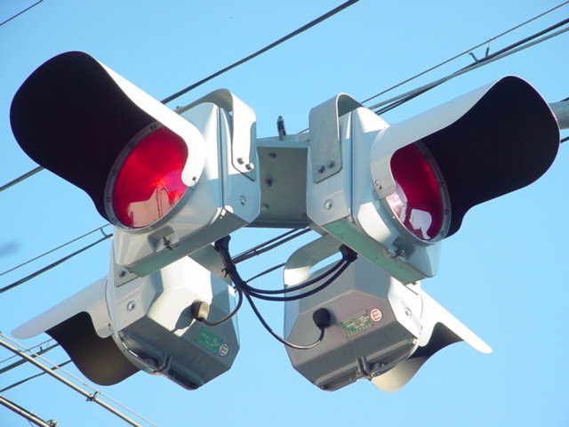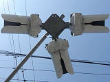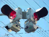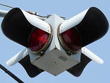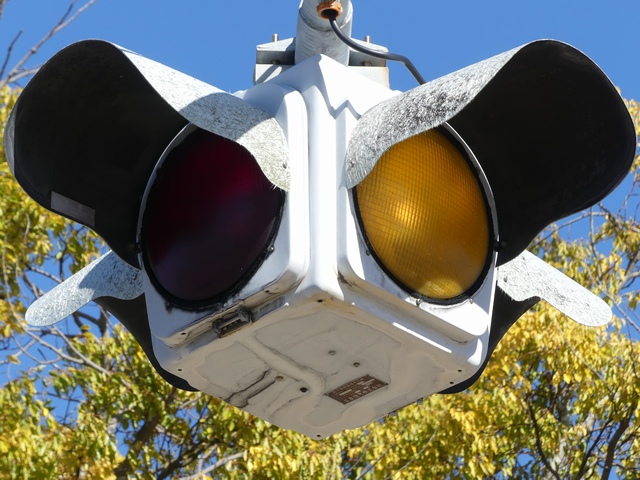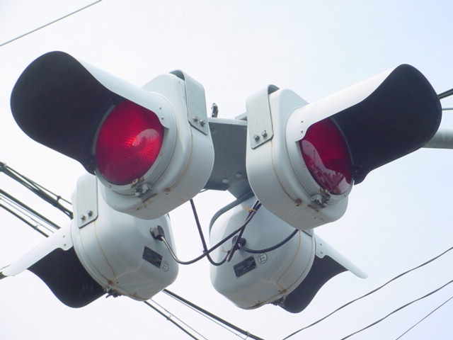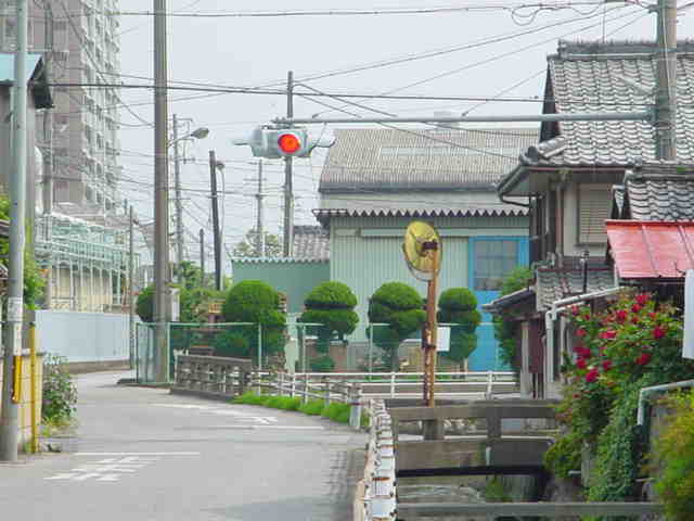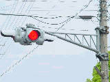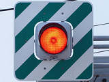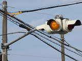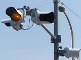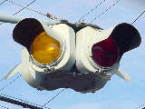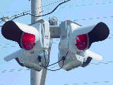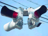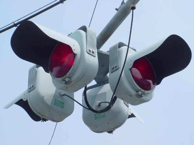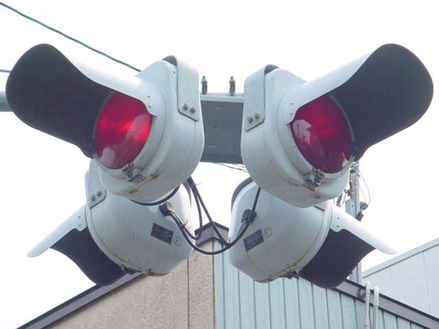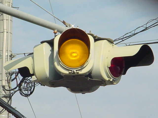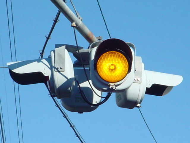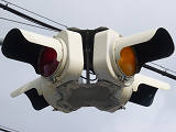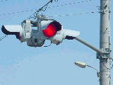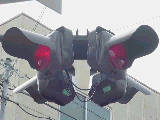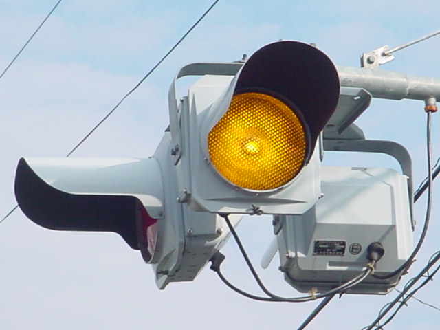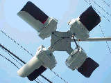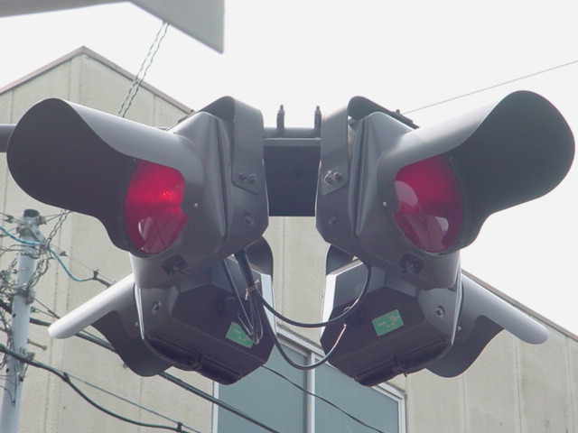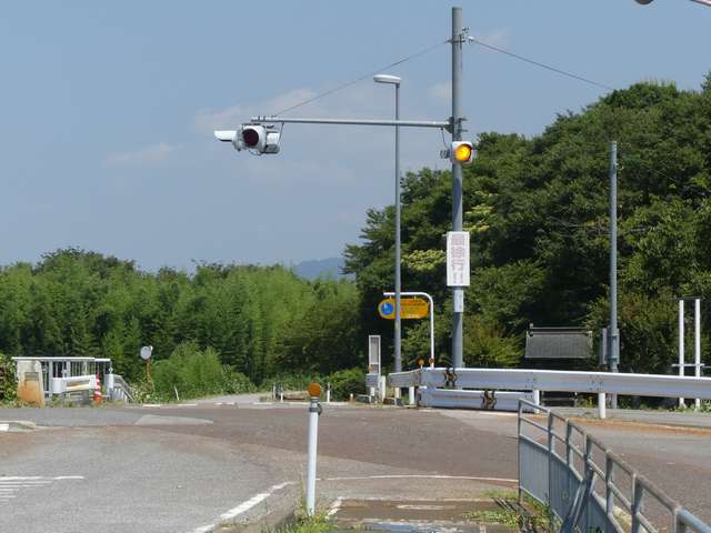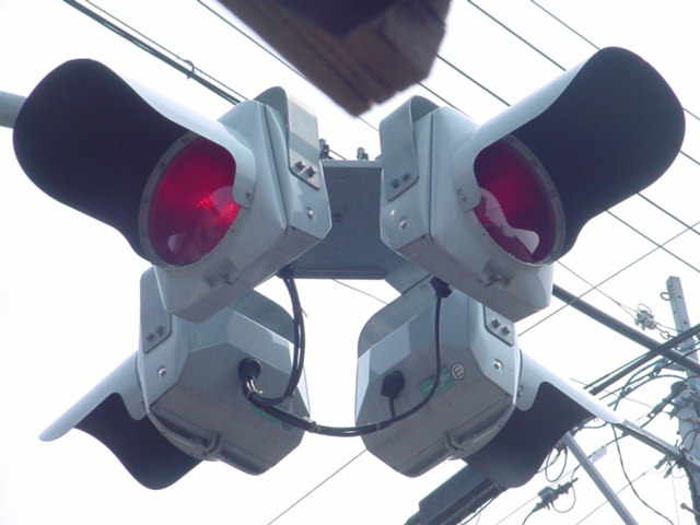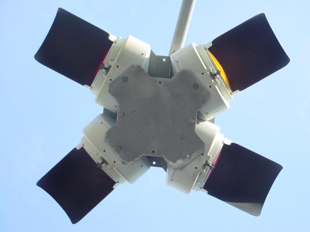 2003年1月に通った時には普通の4方向1灯点滅(2方向黄点滅、2方向赤点滅)でしたが、2003年5月に通った時には全方向赤点滅に改良されていました。この時期に長浜市朝日町一帯の4方向1灯点滅がすべて全方向赤点滅に改良されました。レンズのみを取り替えたようです。