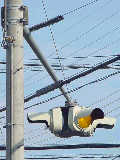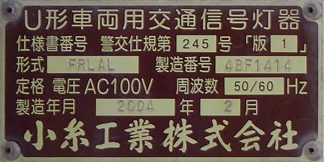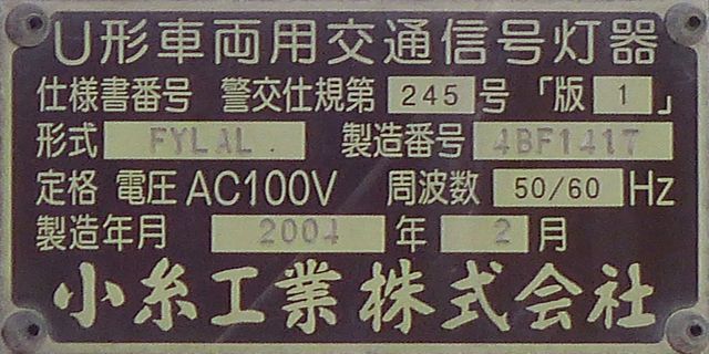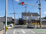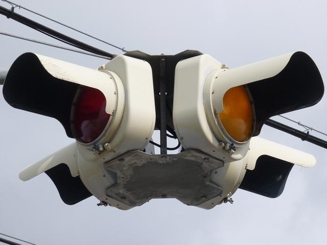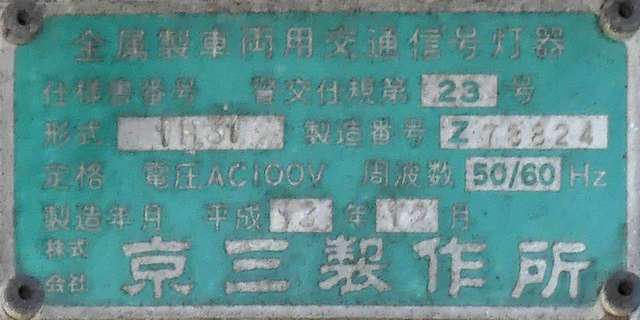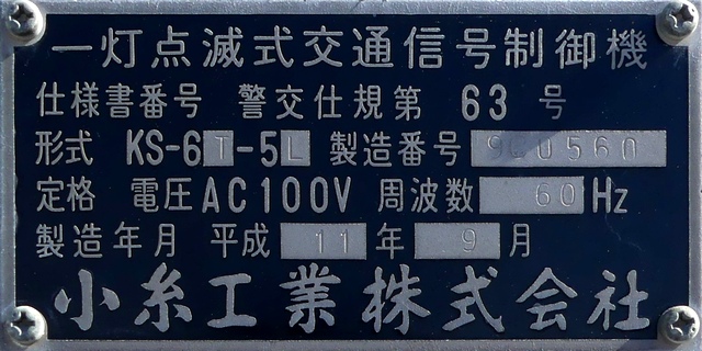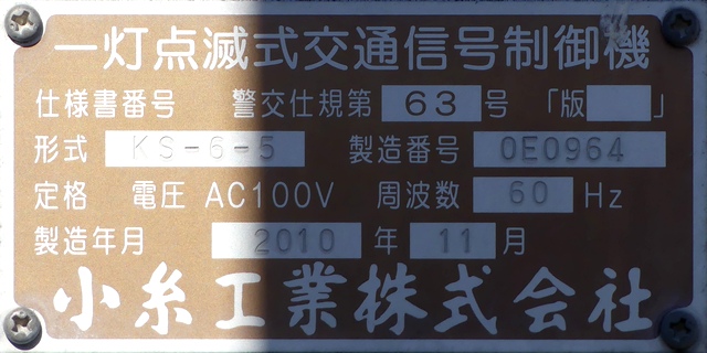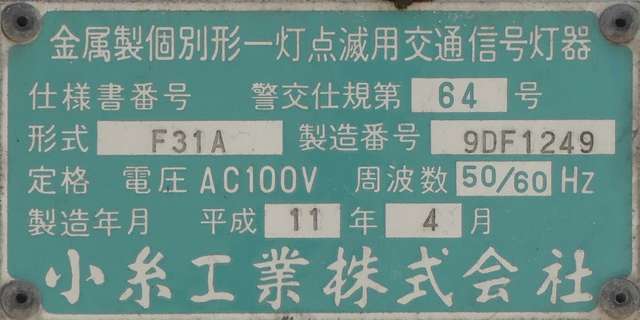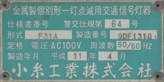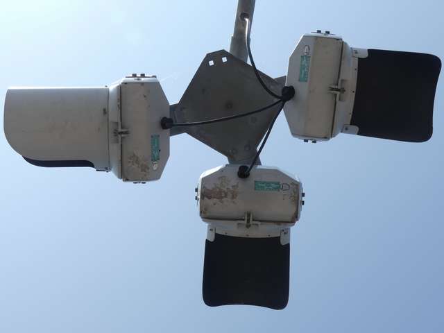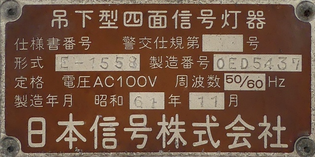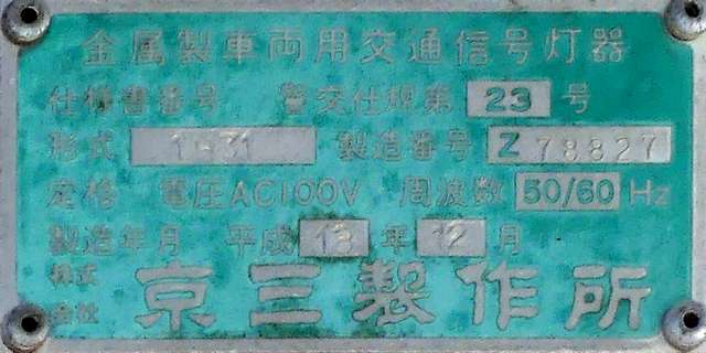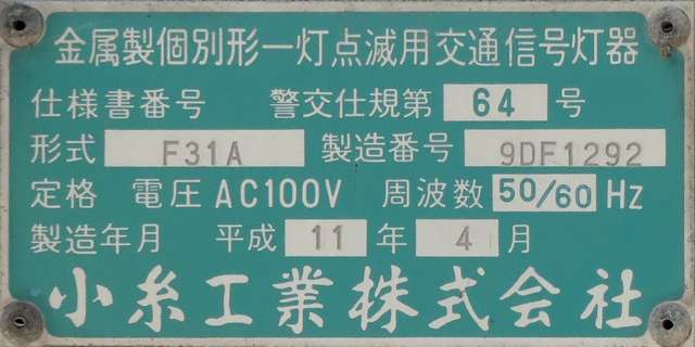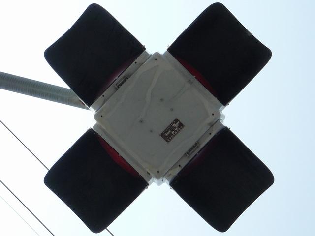 交差点が「f」形なので、カーブしている道路に対する灯器は信号柱に直付け設置されていました。そのため本体には3方向のみに灯器が設置されていました。