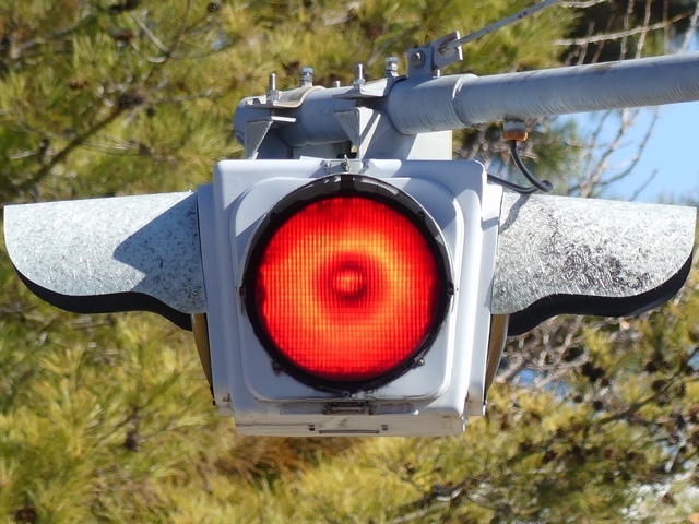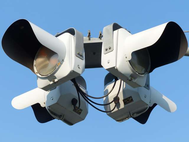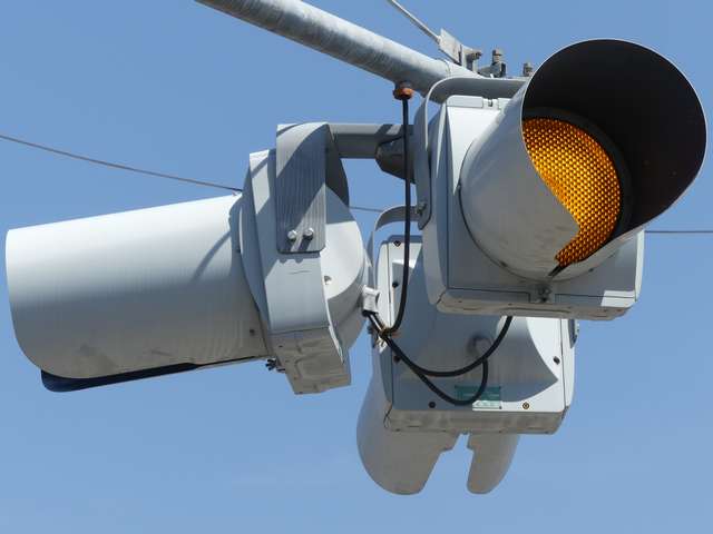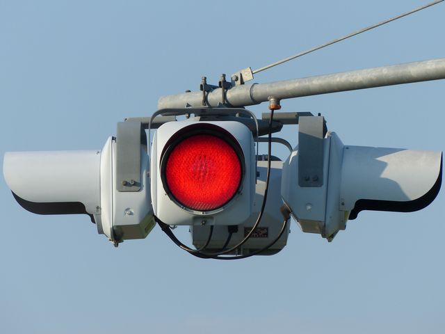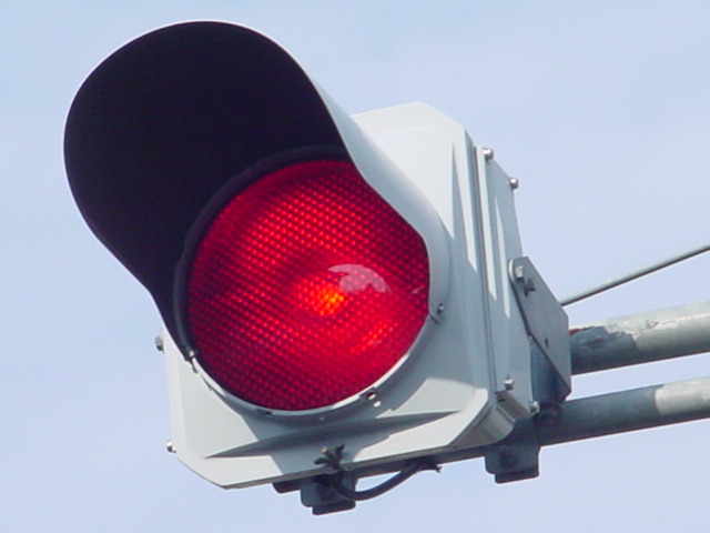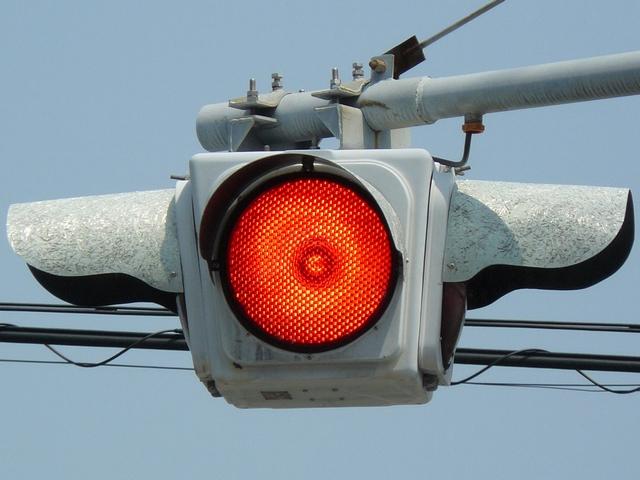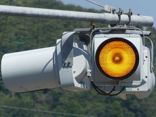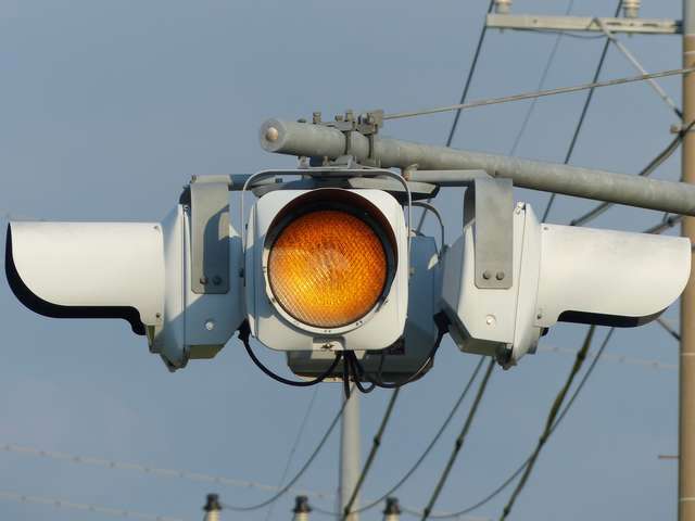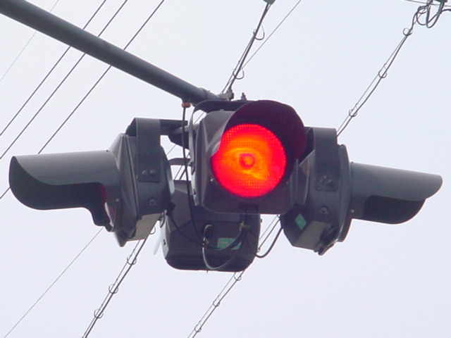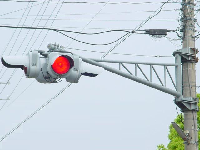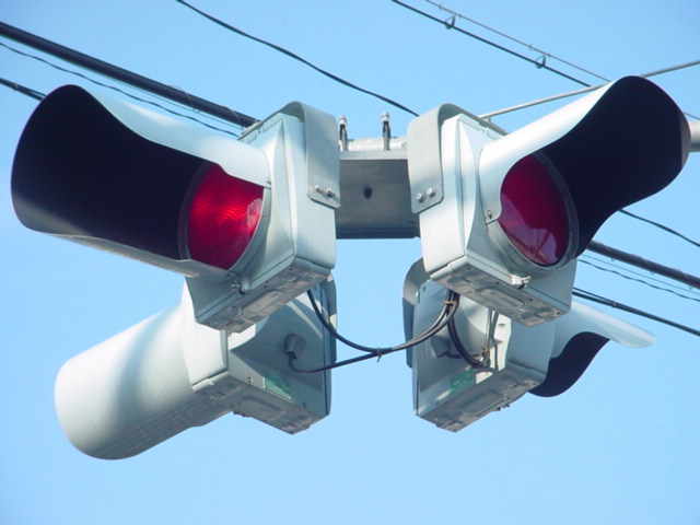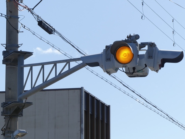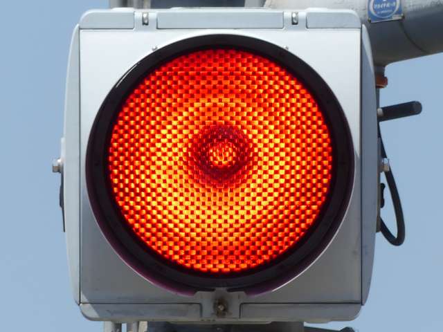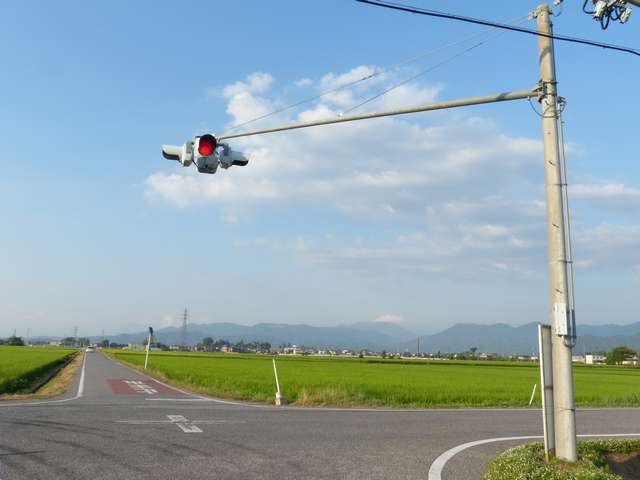 全方向赤点滅の4方向1灯点滅です。交差道路で交互に点滅します。滋賀県の市街地では、全方向に「一時停止」標識が設置された交差点もよく見かけます。