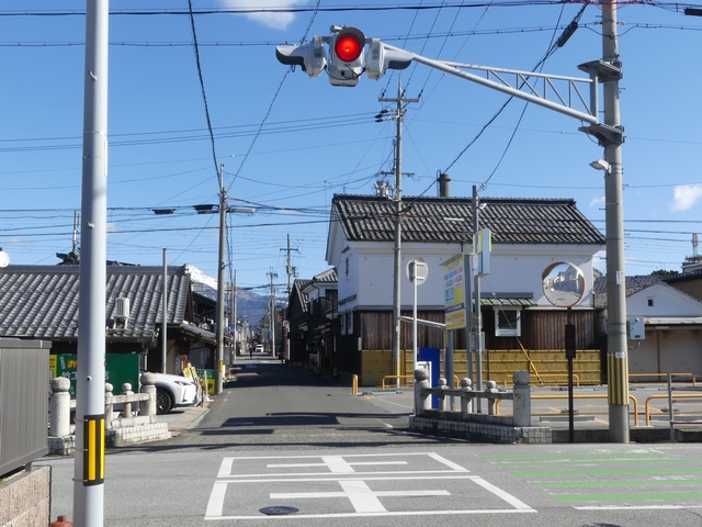 これも長浜市朝日町です。新型灯器です。しかもこのすぐ北に茶色塗装の全方向赤点滅4方向1灯点滅灯器が設置されているので全方向赤点滅が連続で設置されていることになります。