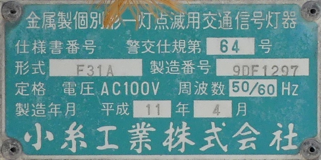 こちらは令和6年度まで残っていました。FRP製の4方向一体型1灯点滅灯器です。