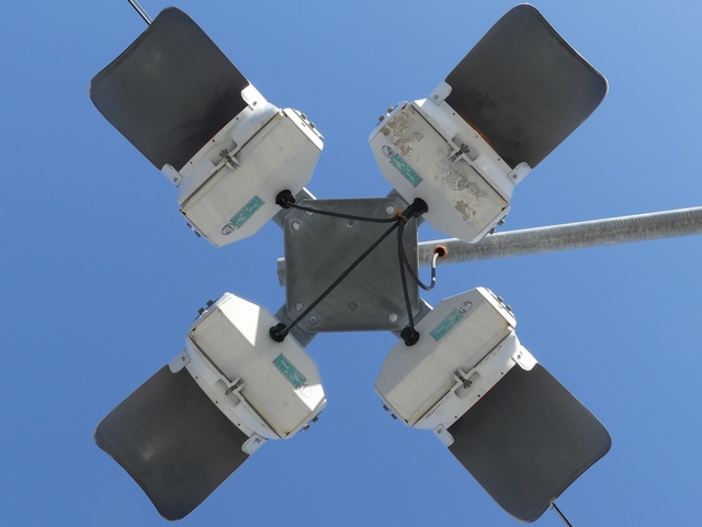 普通は灯器の横面を固定しますが、この4方向1灯点滅は上方と下方を固定しています。