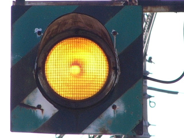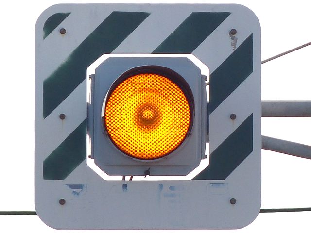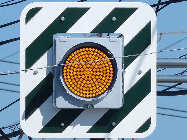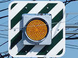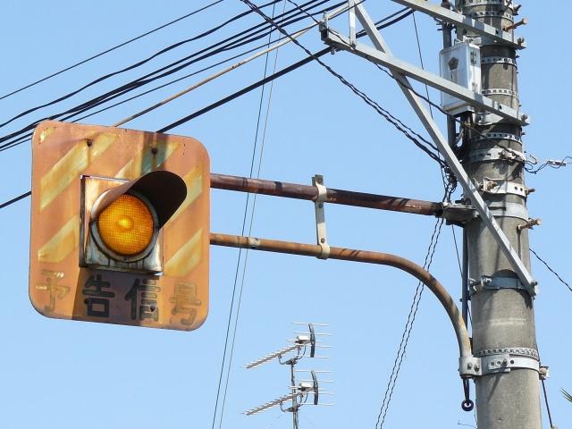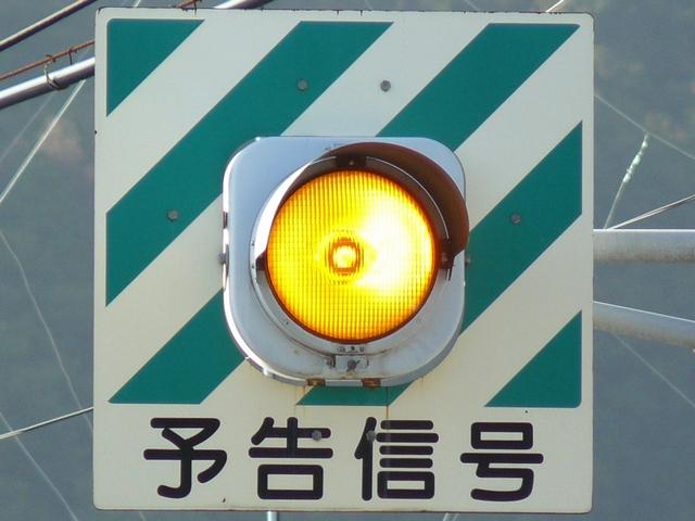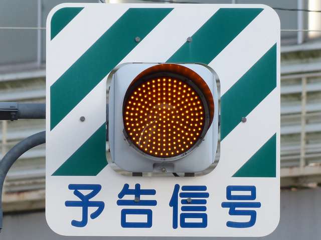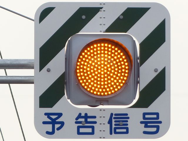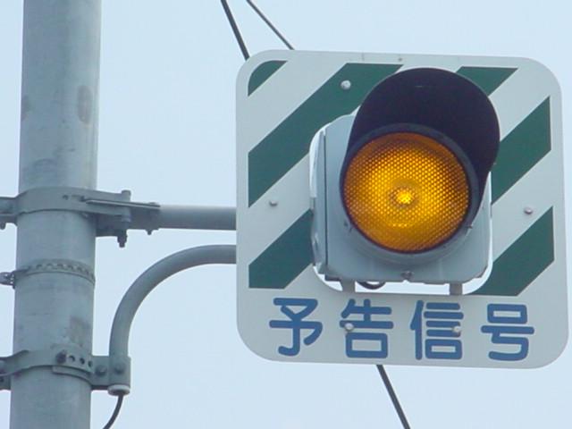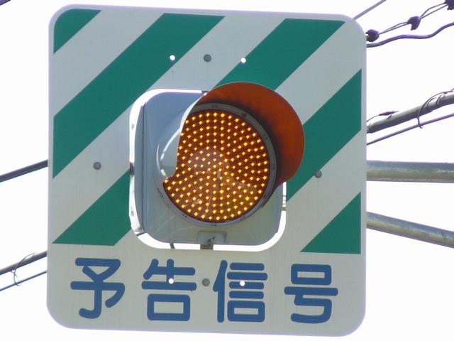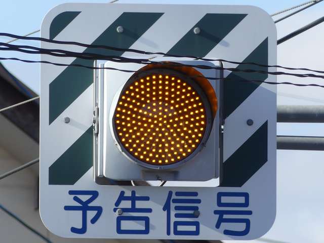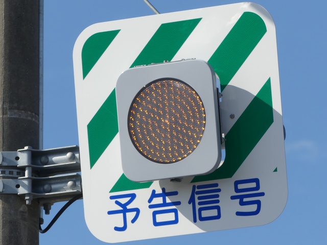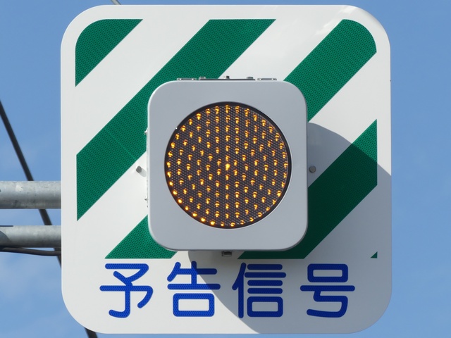 滋賀県にも京都府のように、前方の信号に連動して点滅、消灯する1位式「予告信号」があります。前方の信号が黄になる数秒前に点滅を開始し、青になると消灯します。