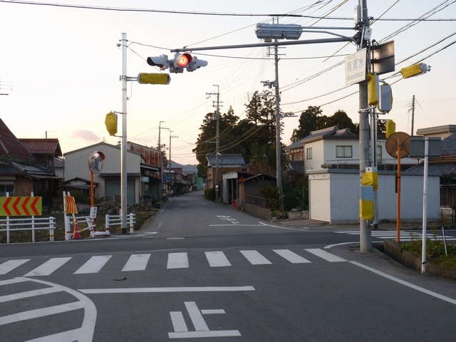 前方の交差点の信号機が4方向1灯点滅から3色信号に更新されるのに伴い一時的に見られた運用状況です。