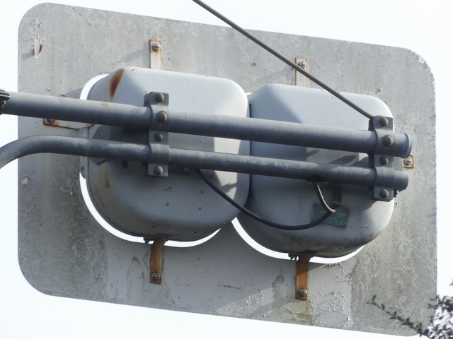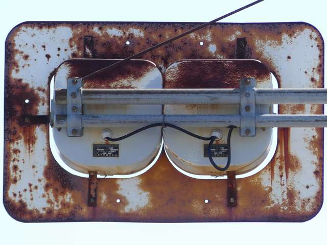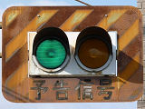 背面板が無く、標示板が「予告灯」となっていました。薄型灯器への交換後も背面板の無い状態は引き継がれましたが、標示板は「予告信号」に変更されました。