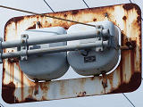 背面板の灯器下の部分を広くして、ゼブラ模様が灯器の下まで周るようにしています。ただし、ゼブラ模様の隅切りの仕方を誤ったエラー品です。2つ上の東近江市のものが正しく、本来は右上は隅切りし、左下は隅切りしないようなので、ゼブラ模様の緑色の部材を張り付ける際に逆に貼りつけてしまったのでしょう。