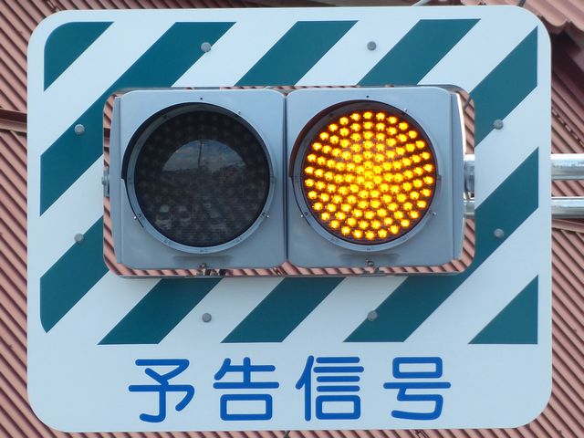 滋賀県には何種類か予告信号がありますが、これがもっともよく見られるタイプです。