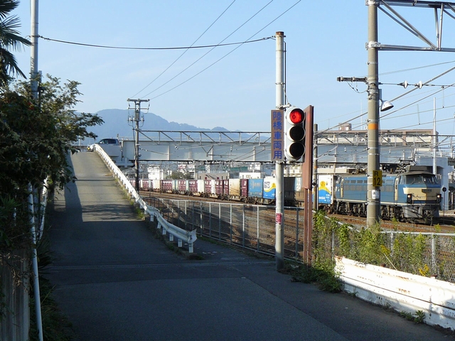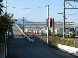 通常、左右制限フードは、他方向の交通(車両・歩行者など)からの誤認防止のために使用されますが、ここでは併走する鉄道からの誤認防止のために使用されています。制限フードだけでは不十分なのか、目隠しの板も隣に設置されています。