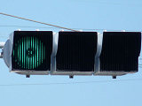鋭角交差点からの誤認防止のため、本灯器のみに左右制限フードが取り付けられています。