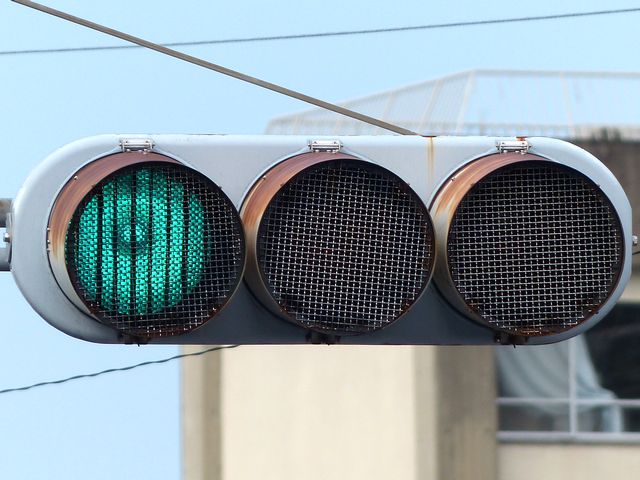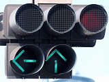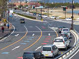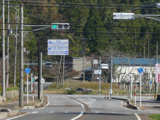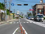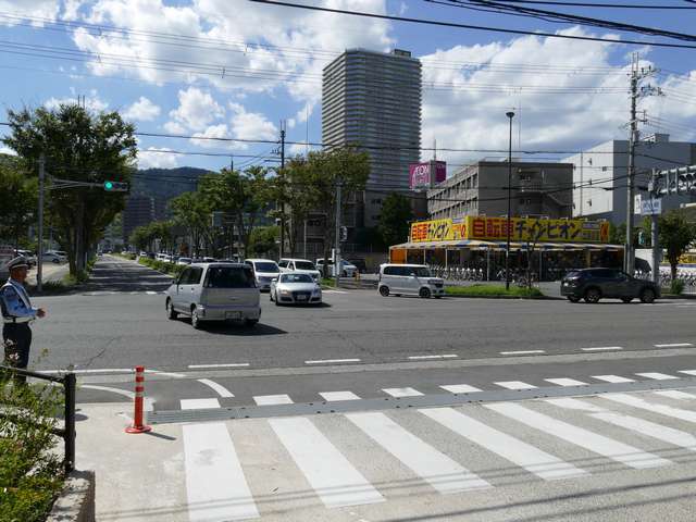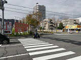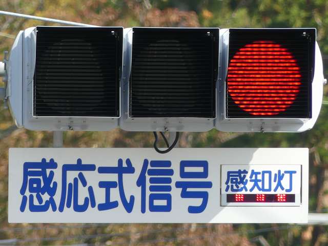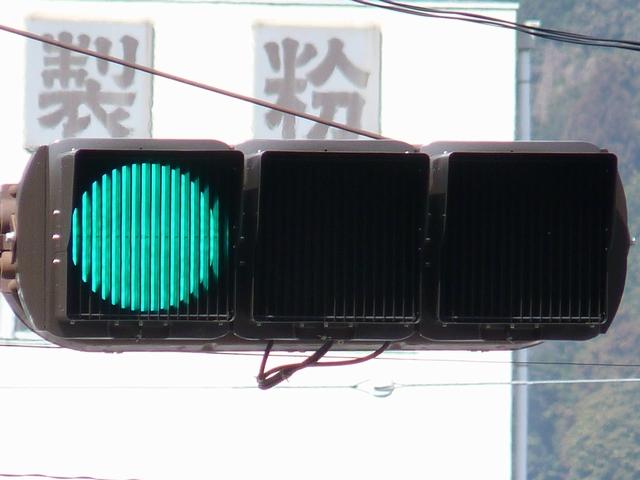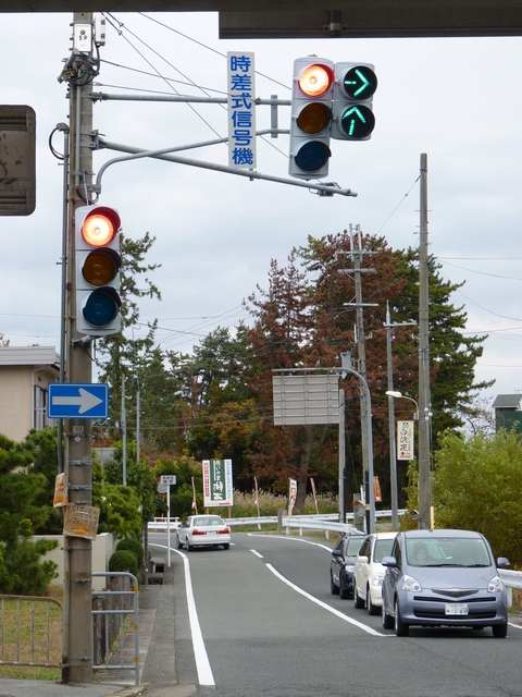 連続交差点での誤認防止のために、矢印灯器のみに距離制限フードが装着されています。ただし現在は、手前に高架道路ができたため、手前交差点からこの灯器は見えなくなりました。