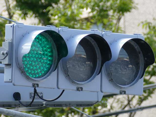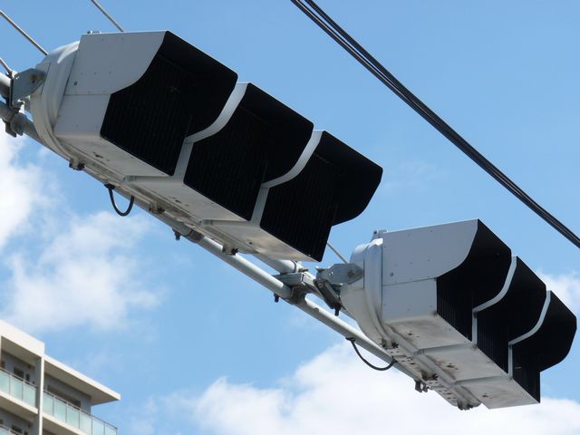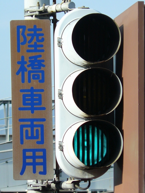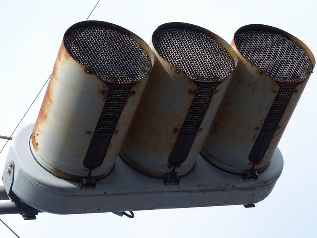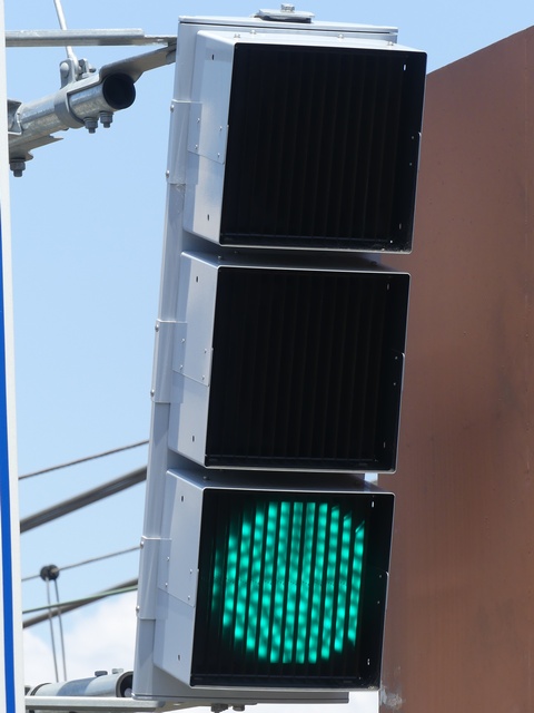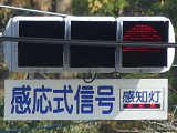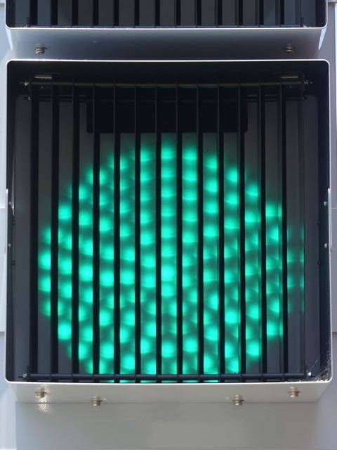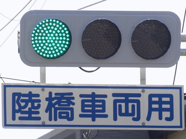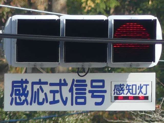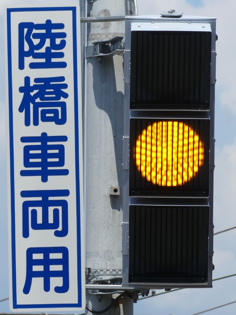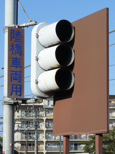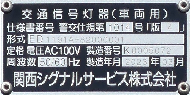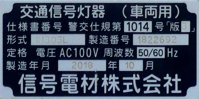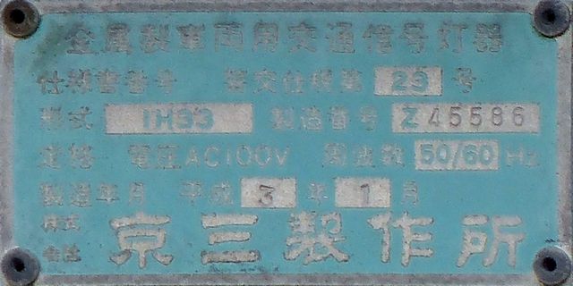令和5年度工事で低コスト灯器に交換されました。低い位置に設置されており、SD制限フードの構造がよく見えます。フードと灯器の間に不透明の四角い板が挟まれているのが分かります。