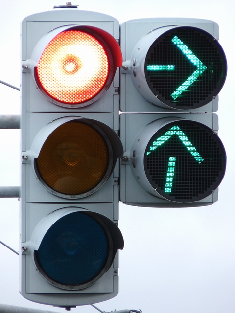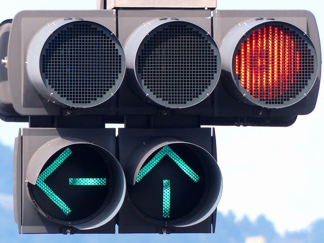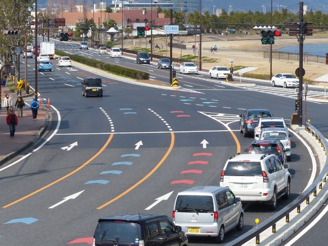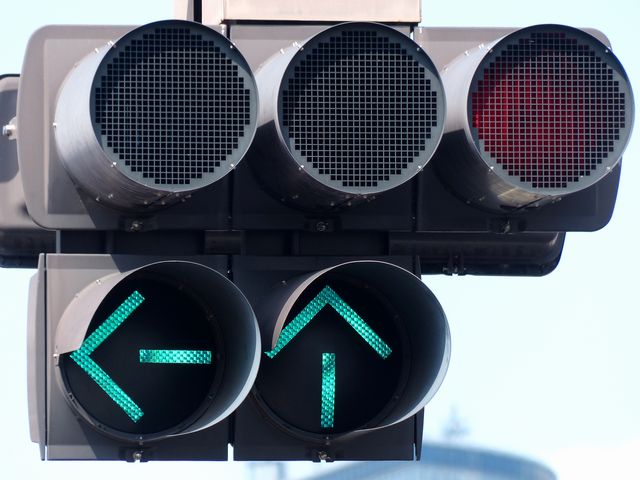 高架道路で上下線が分離されている道路からの右折先に設置されています。連続交差点と勘違いした右折車が右折先の赤信号を誤認して交差点内で停止してしまうのを防ぐためです。なお、上下線で交互に青信号になるため、右折車が交差点内で対向車待ちのために停止することはありません。