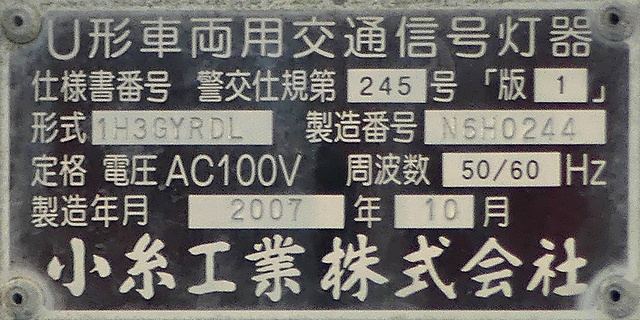 かつては偏光灯器(3色とも)が設置されていましたが、平成21年度工事で信号電材製薄型灯器にSD制限フードを装着したもの(3色とも)に交換されました。ただ、SD制限フードの性能が良すぎ、手前交差点を右折してきた車両の赤信号見落としがかえって発生しやすかったのかもしれません。令和5年度工事でこの灯器に交換されました。