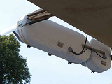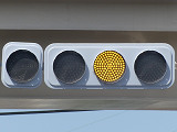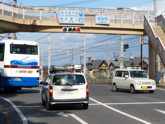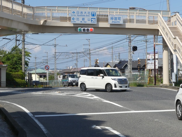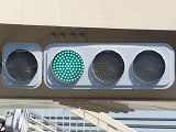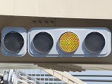 矢印灯器を本灯器の下に設置すると、高さ基準(滋賀県警察の仕様書によれば5.5m以上)を満たさなくなるためでしょうか、本灯器の左隣に設置しています。