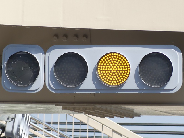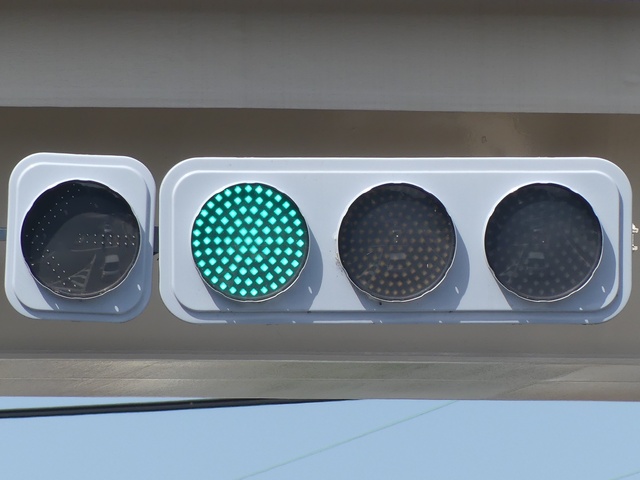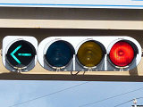 なお東進では、この灯器の左手前にある灯器には矢印灯器がなく、右折車線に大きな車両が停止すると矢印信号が見えなくなり、赤信号だけが見えます。
