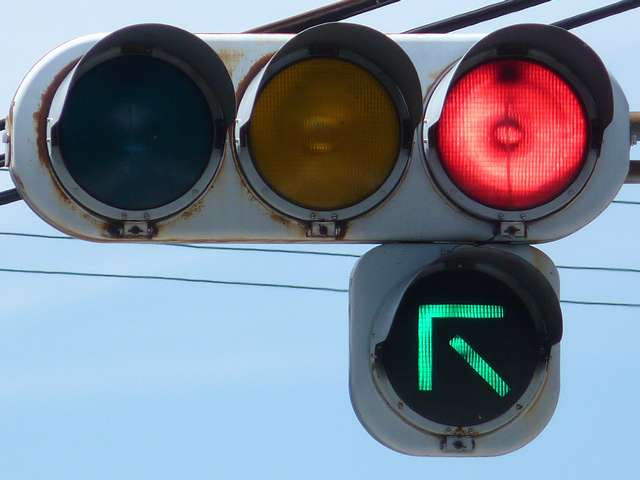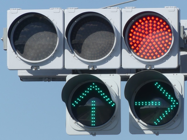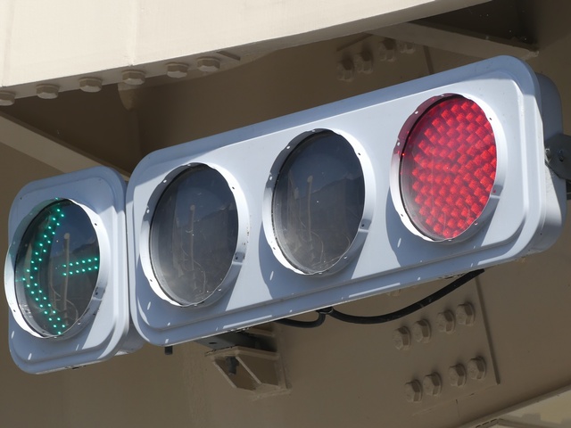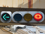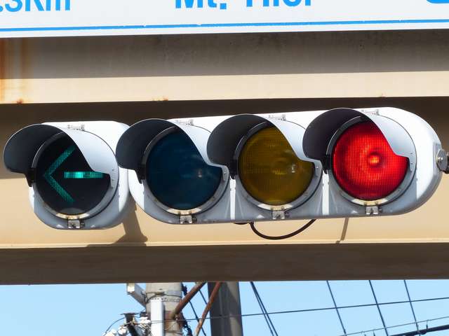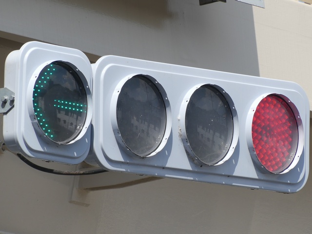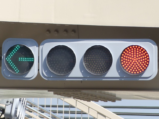 現在は、左斜め矢印信号に変更されています。