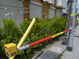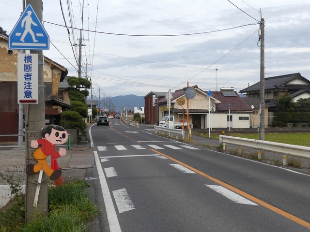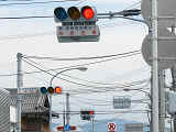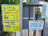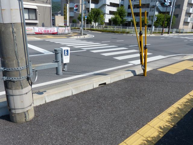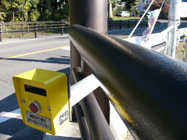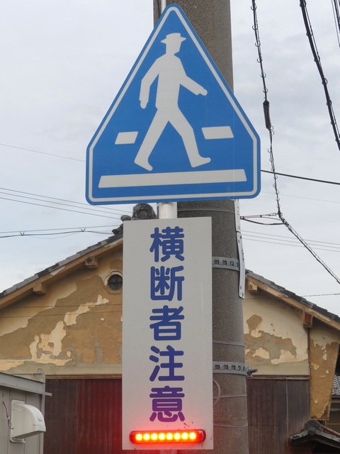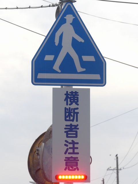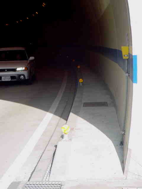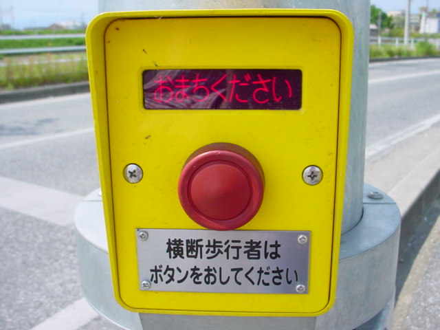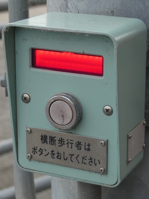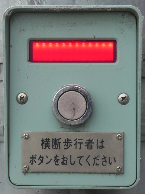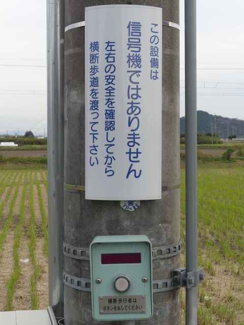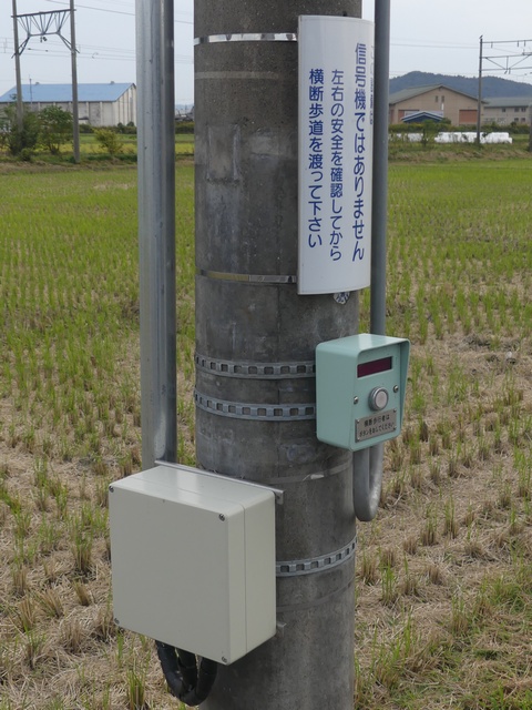 なんと信号機と関係のない場所に押ボタン箱が設置されています。(トンネル入口の信号灯器は関係ありません。)トンネル入口の壁面(両側)に押ボタン箱、そのすぐ手前に歩行者感知器が設置されています。この押ボタンを押すと、トンネル手前の電光情報板に「トンネル内歩行者有(黄点滅)」と表示され、ドライバーに対し注意喚起します(表示は一定時間経過後?消灯)。 トンネルのすぐ西に(集落内を通る)R303旧道があり、歩行者はそちらを通行すれば安全に通れます。よってこのトンネルはもともと歩行者が通行することを想定せず建設したためか歩道がかなり狭くなっており(実際は歩道として設計されていない)、またトンネル全体がカーブしていて、歩行者の通行は大変危険です。それにもかかわらず、歩行者がトンネルを通ってしまうためにトンネル完成後しばらくして押ボタン・感知器が付加されたのでしょう。 歩行者の目線では、この押ボタンを押しても表示窓の「ボタンをおしてください」の表示が消える(10秒後再点灯)だけで、それ以外、身の回りに何の変化も起こらないため、少し戸惑ってしまいます。例えば「ボタンを押すとドライバーに対し注意喚起します。」などの看板を押ボタン箱の近くに設置しておけば、歩行者にとって分かりやすいのになぁと思います。 歩行者感知器の役割は分かりませんでした。もしかしたらトンネル通過後の歩行者を感知して電光情報板の表示を消すのでしょうか?(1〜7枚目画像はトンネル南側、8枚目画像はトンネル北側)