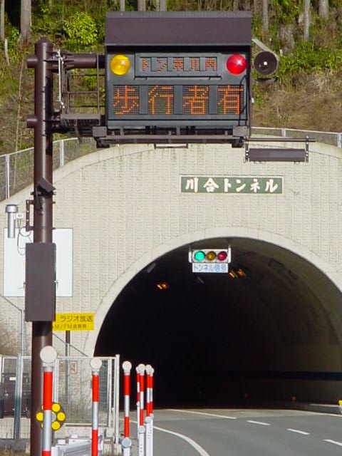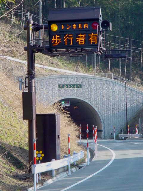 R303の川合トンネル(2000年3月完成、距離1131m、幅7.5m、高さ4.5m)です。