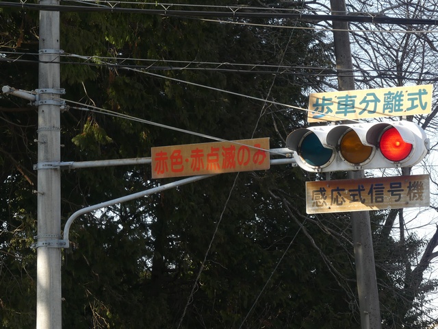 現在は、従道路の感応式信号化によって標示板は撤去されています。 |