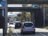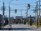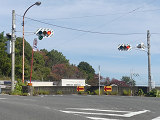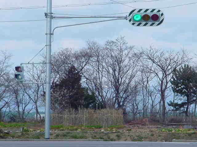 高台にある交差点で、灯器を見落とさないよう、全方向の主灯器に背面板が併設されています。