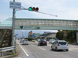 歩道橋に設置されており、灯器を目立たせるために、灯器に背面板を併設しています。