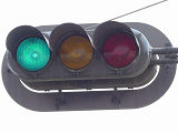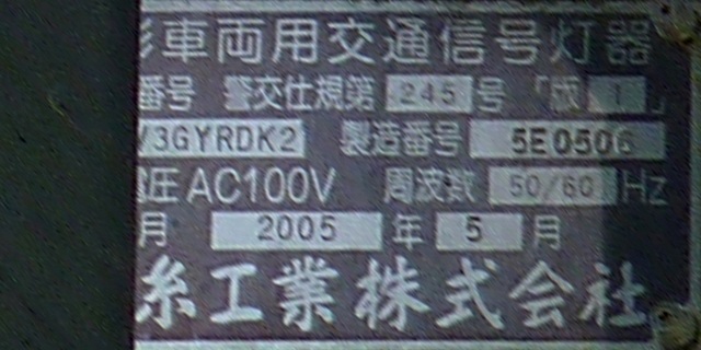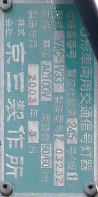 東進用灯器で、バックが開けているので、朝日の逆光の影響を受けやすいため、信号を見落とさないように灯器に背面板を併設しています。