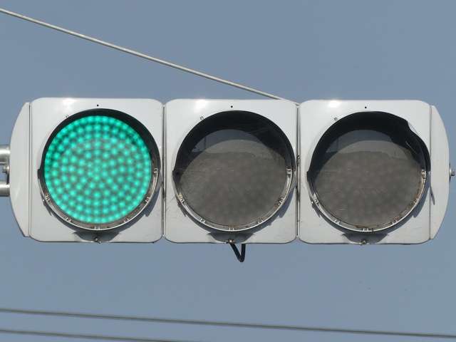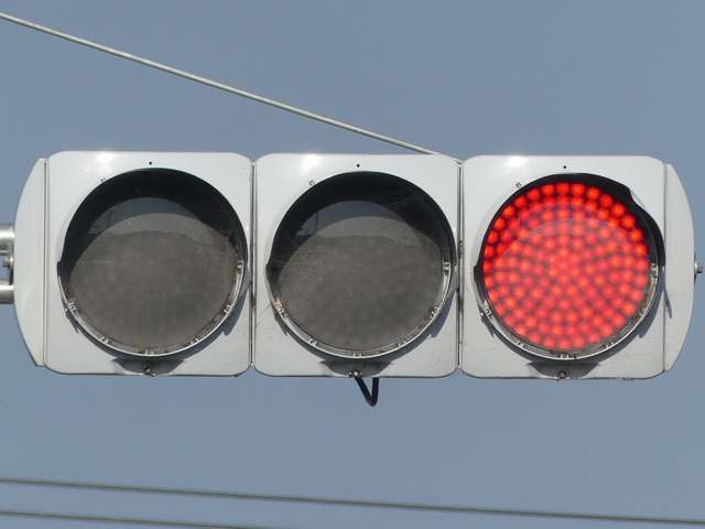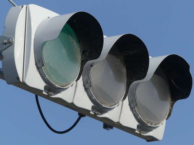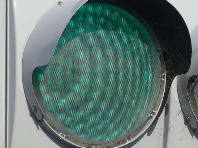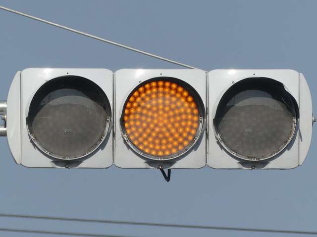 星和電機製のレンズが厚いタイプの薄型灯器です。県内での設置はこの交差点の2台のみと思われます。