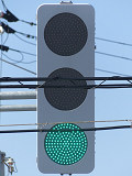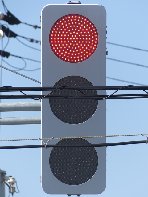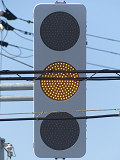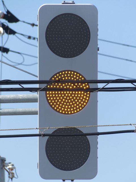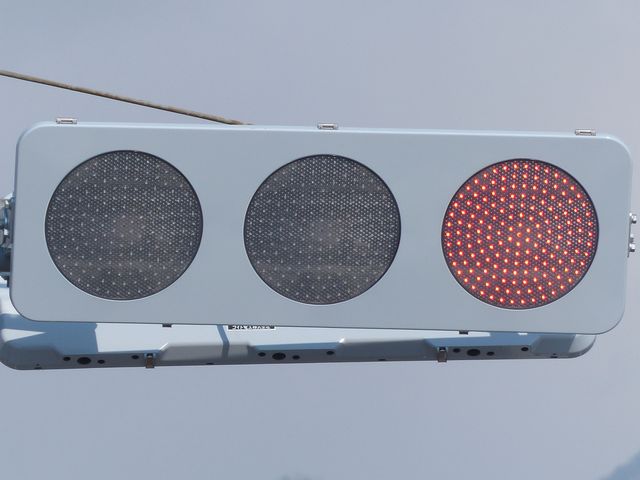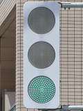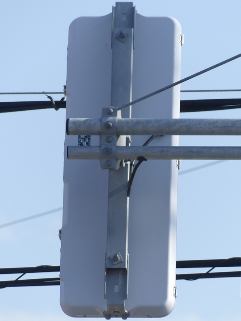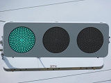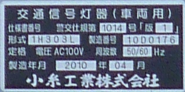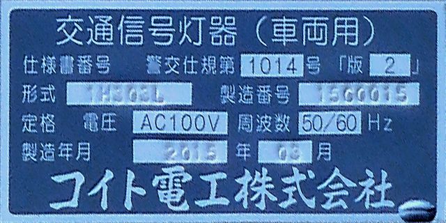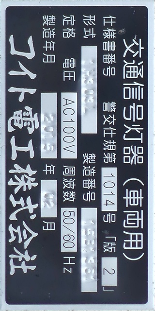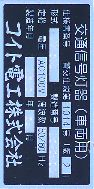銘板も変更となり、量産型初代灯器では小さな銘板でしたが、本来の大きさに戻りました。初代灯器ではすべての文字が印刷でしたが、形式欄などが刻印になっています。初代灯器の銘板は色褪せが激しく、何年か経つと文字が全く読めなくなるものもあったため変更されたのでしょうか。ただし、シール状の銘板に打刻しているためか、彫が非常に浅く、文字が読みにくいものとなっています。 灯箱前面に大きな変更はありませんが、LED素子配列が変わっています。