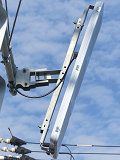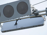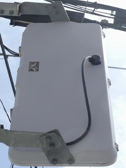 フラット型灯器が量産されてから初めての大きなモデルチェンジです。金具取り付け部分を除いて、灯箱裏面の角が面取りされたような形状となっています。また、銘板の貼り付け部分が窪ませてあります。