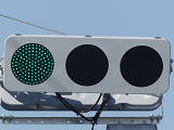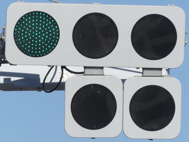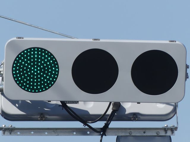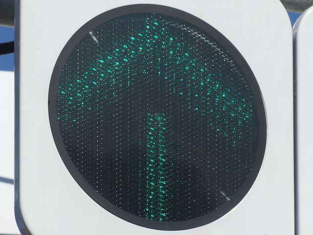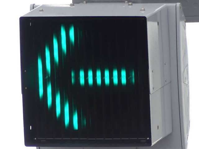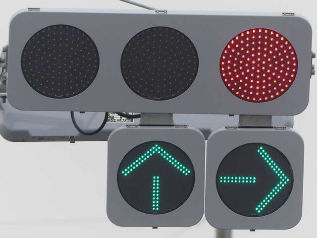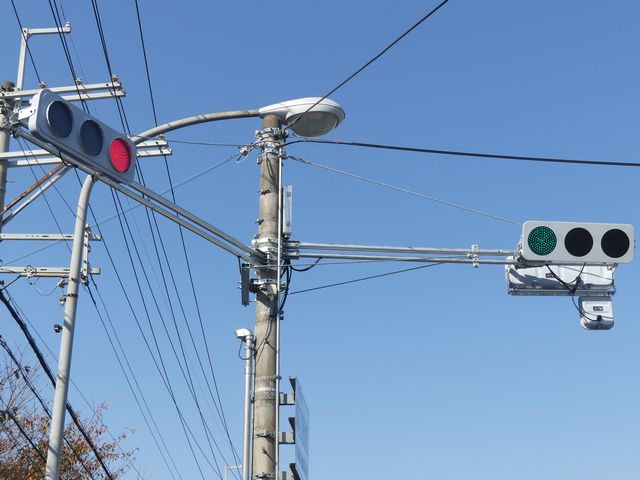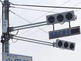 平成29年度工事でコイト電工製の通常の低コスト灯器に交換されていましたが、鋭角交差点であり誤認が多発したのか、平成31年度工事でレンズが狭角レンズに交換されました。矢印灯も狭角レンズとなっています。