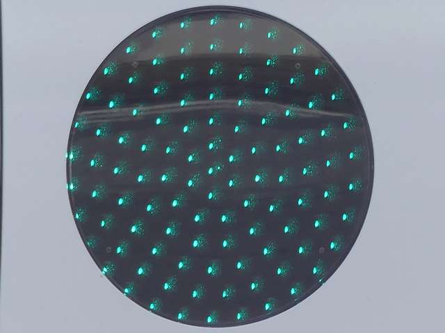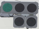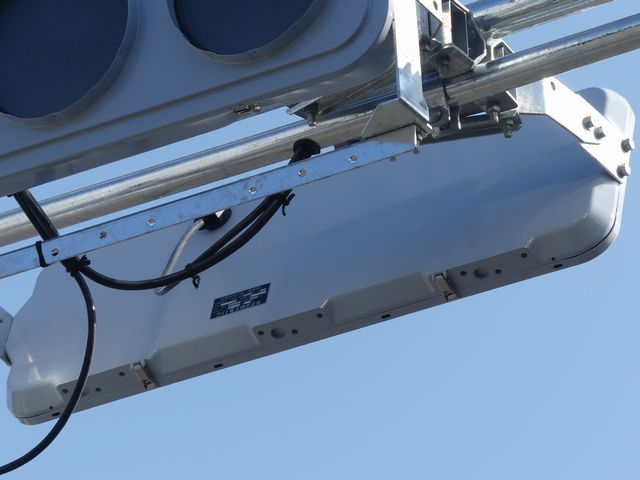 鋭角交差点での誤認防止のため、レンズ表面に視角制限体(左右制限用)を装着した狭角レンズ仕様の小型フラット灯器を設置しています。