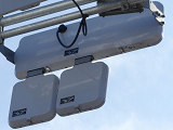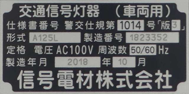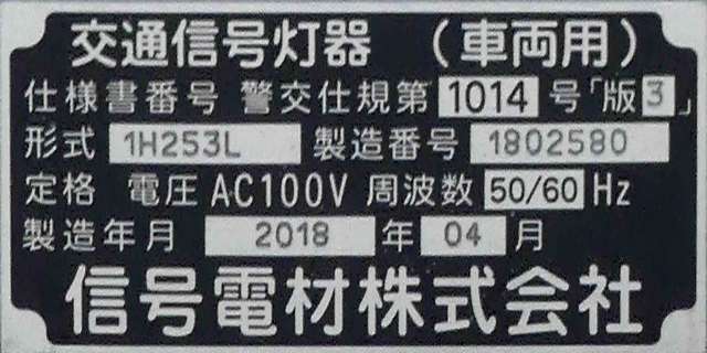 この更新工事(機器納品と設置工事が別発注)では、通常灯器は日本信号製が納品されていますが、「片かくしフードまたは同等品」指定の灯器は制限体付きのコイト電工製が納品されています。