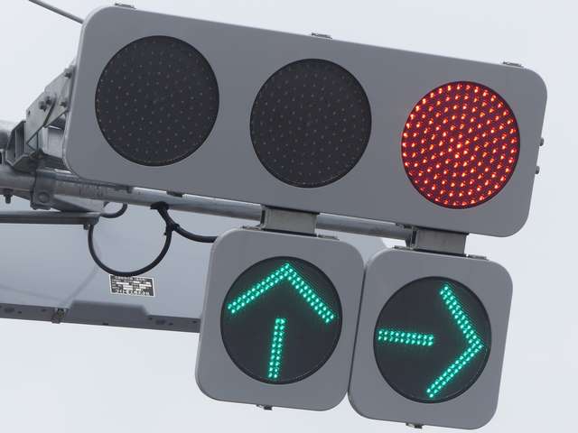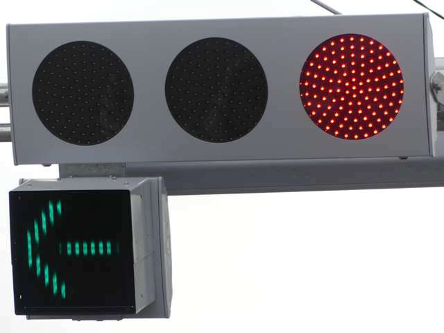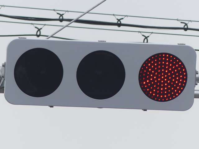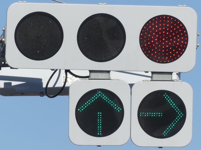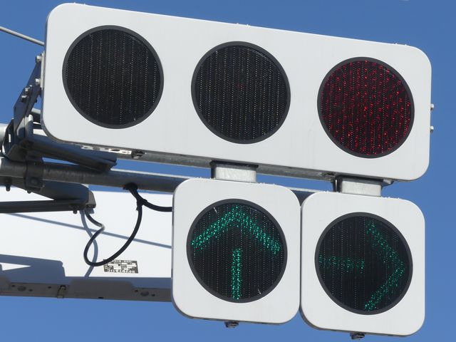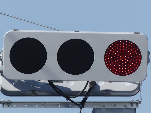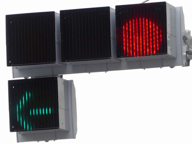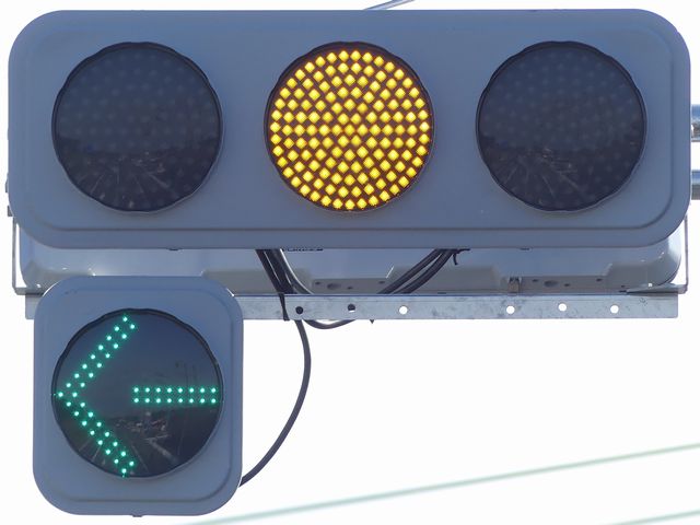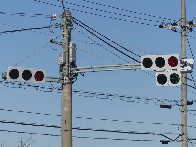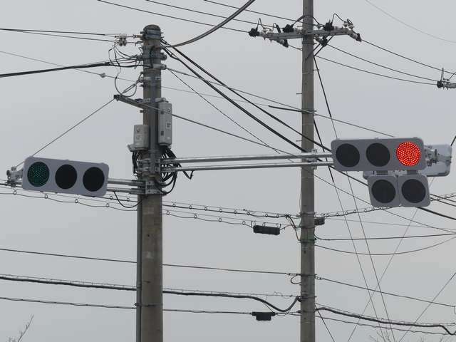 更新前は、主灯器は3色灯器が赤灯のみ筒型フード、矢印灯器が変更フィルター装着のもの、補助灯器は矢印灯器のみ偏光フィルター装着のものでした。