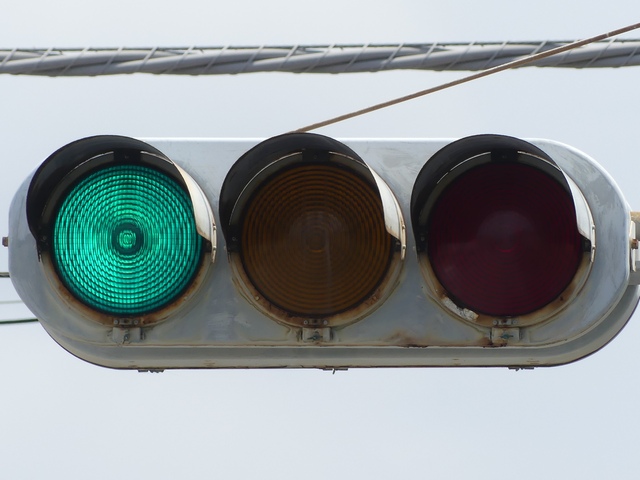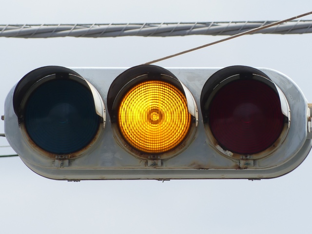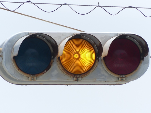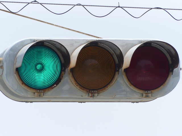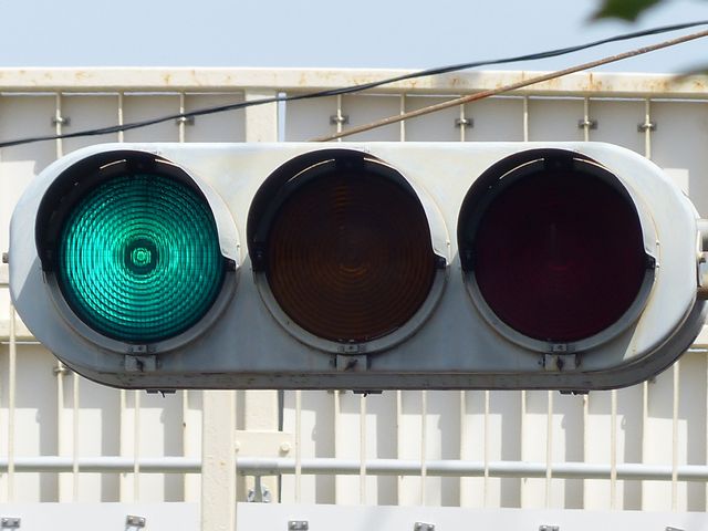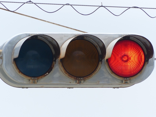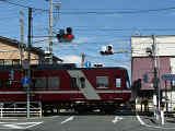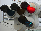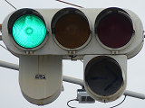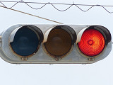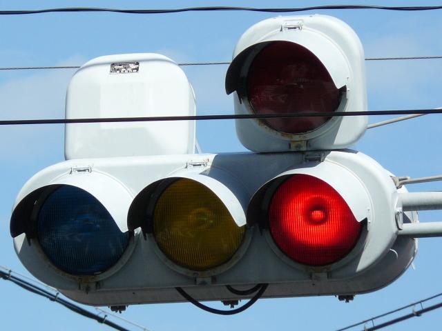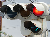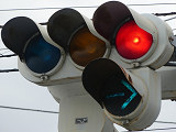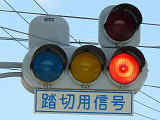 踏切に隣接する交差点の踏切と直交する側の信号機です。「踏切用信号」等の標示板はありません。信号サイクルは3色信号で、おまけの赤は通常使用しません。おまけの赤は非常時用か予備用だと思われます。