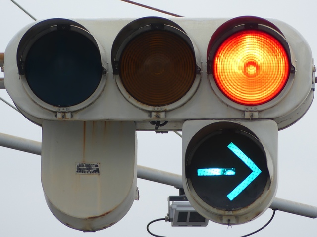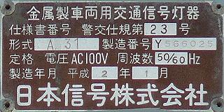 矢印灯器は正面灯器、背面灯器とも初期丸型灯器です。