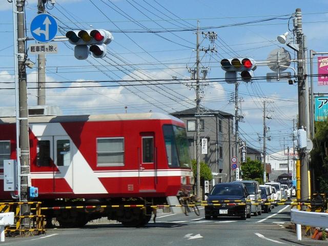 交差点に隣接する踏切の「踏切用信号」です。「踏切用信号」と言うからには、交差点用ではないということでしょうが、交差点用の信号はありません。ただし、交差点の信号と連動しており、この信号が赤の時に、画像手前からの直進車両は交差点手前の停止線で停止することになります。画像左方からの左折車両は左折直後の踏切手前で停止することになります。進行できるときは、前後の交差点の信号と連動して、青になったり、黄点滅になったりして複雑です。おまけの赤は通常使用しません。おまけの赤は非常時用か予備用だと思われます。