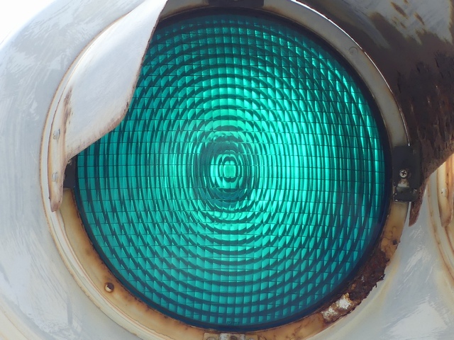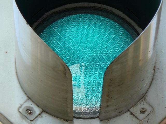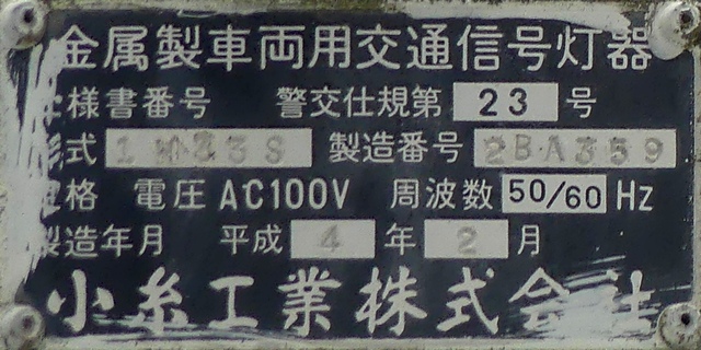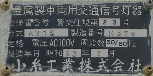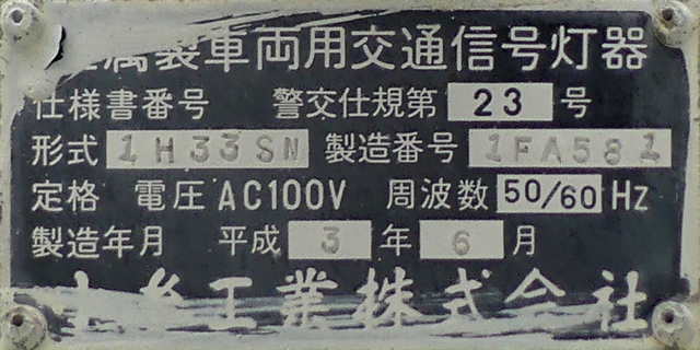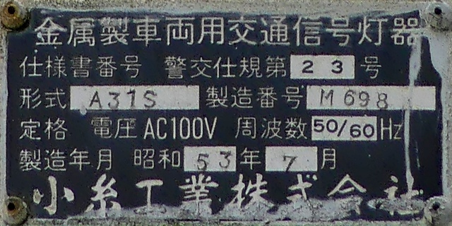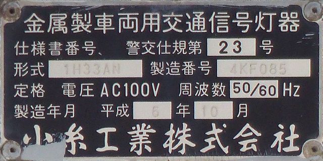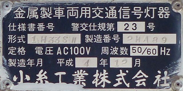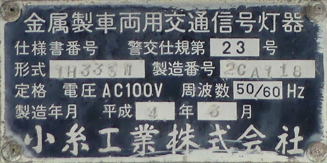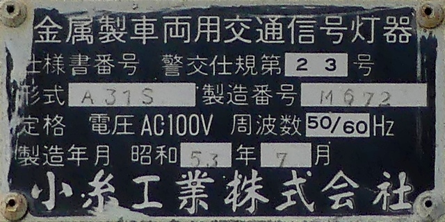 西日対策のため同心円状模様の遮光レンズを使用した小糸工業製の灯器で、静岡県などで採用されていました。網目模様レンズと同心円状模様遮光レンズの二重構造になっているようです。