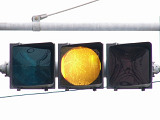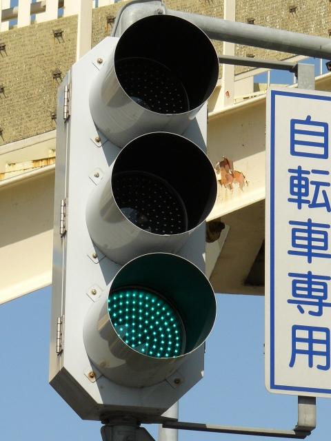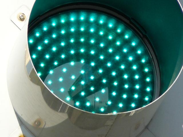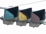 「LED式自転車用交通信号灯器」という名称で、通常の車両用灯器よりもサイズの小さい灯器です。プロジェクター方式のLED式です。
