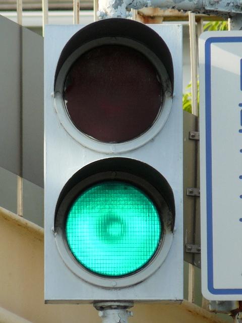 信号は青、青点滅、赤の順に変わります。しかし車両用信号(人形の無い信号)の青点滅信号(青色の灯火の点滅)の意味は道路交通法施行令では規定されていません。