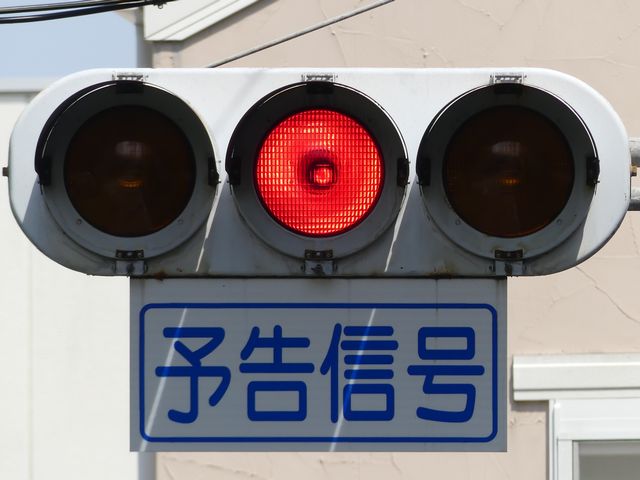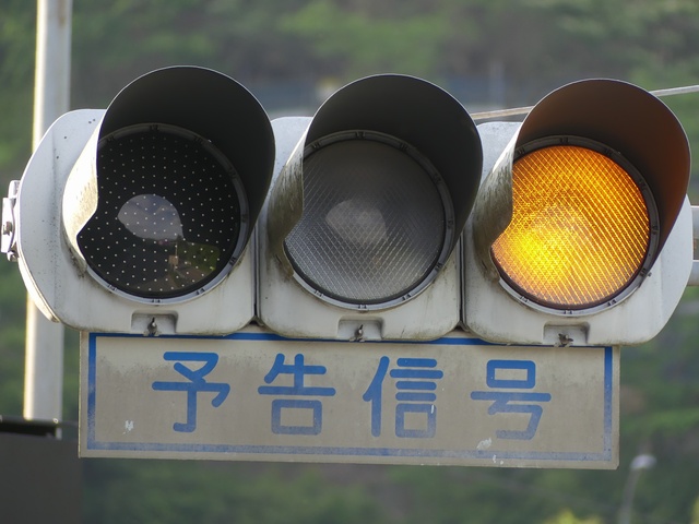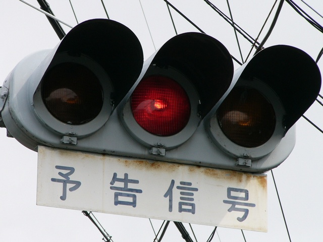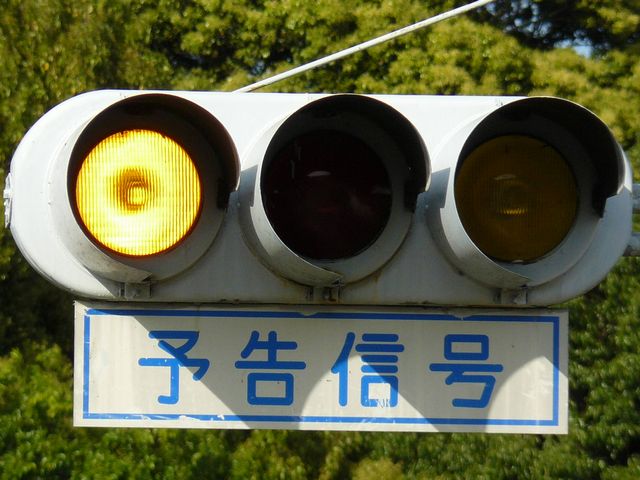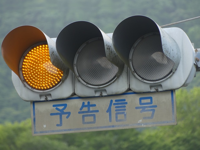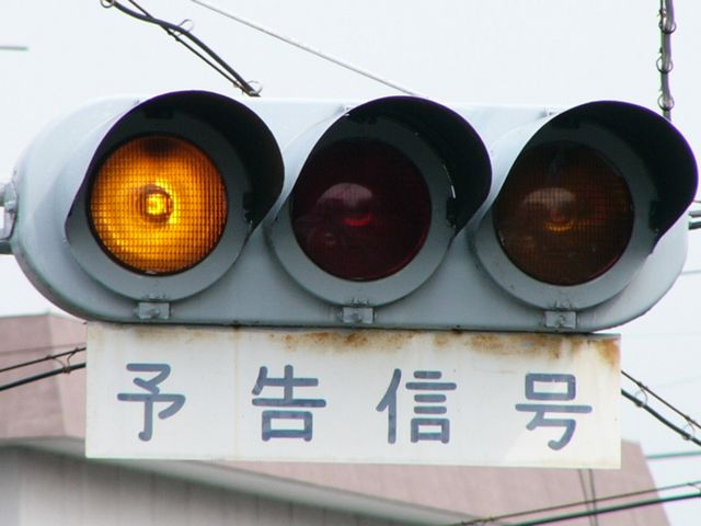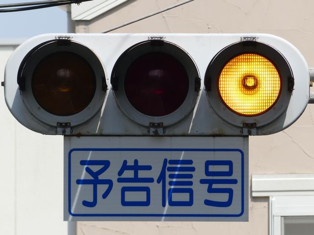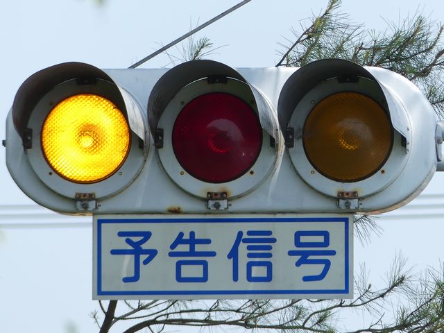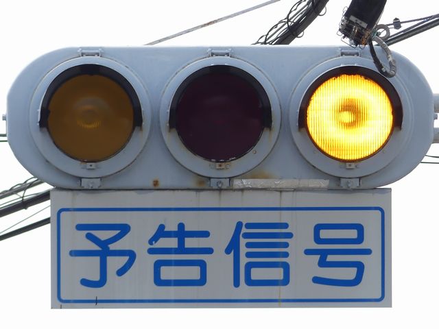 | 黄・赤・黄(「予告信号」前方信号連動) |