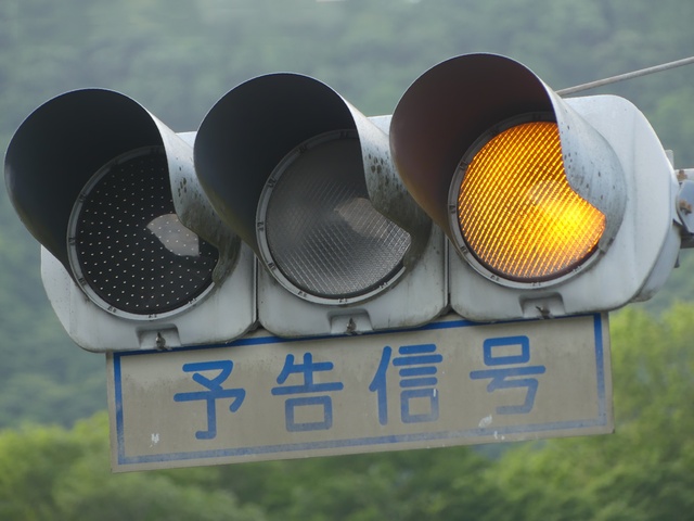 | 黄・青・黄(「予告信号」前方信号連動) |