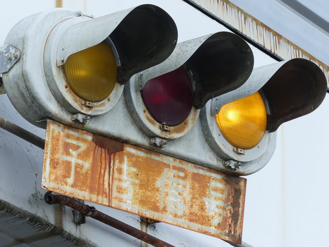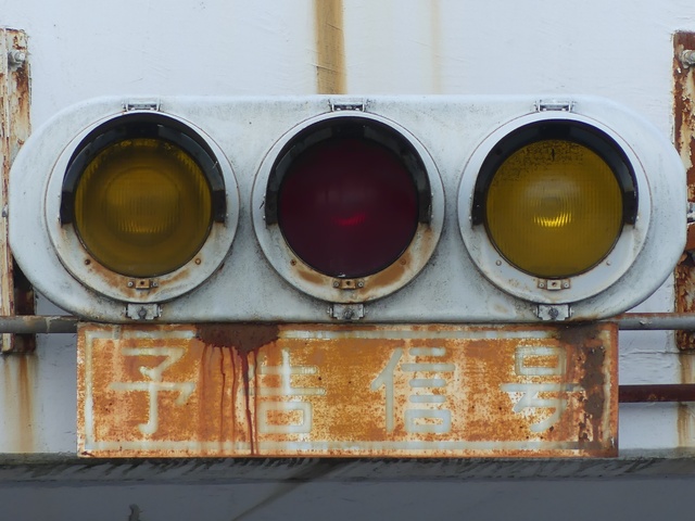 | 黄・赤・黄(「予告信号」前方信号連動せず・右黄のみ使用) |