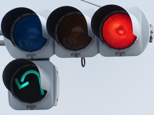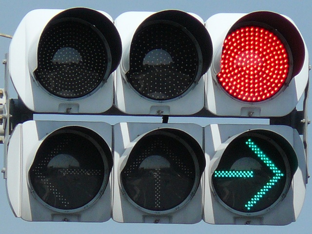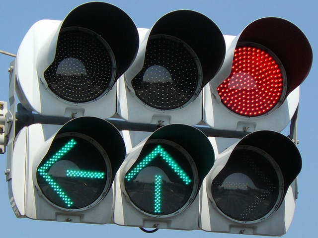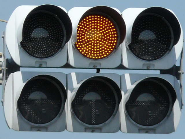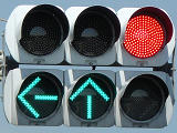 静岡県では他県で2列配列となっている矢印灯器でも3列配列になっています。