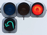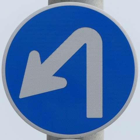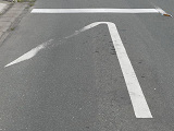 鋭角左折を表すためになぜか屈曲した矢印を使用しています。真左への左折が禁止されており、鋭角左折のみが可能であることを表現したいのでしょうが、それならば単に左斜め下を指す矢印で表現可能です。