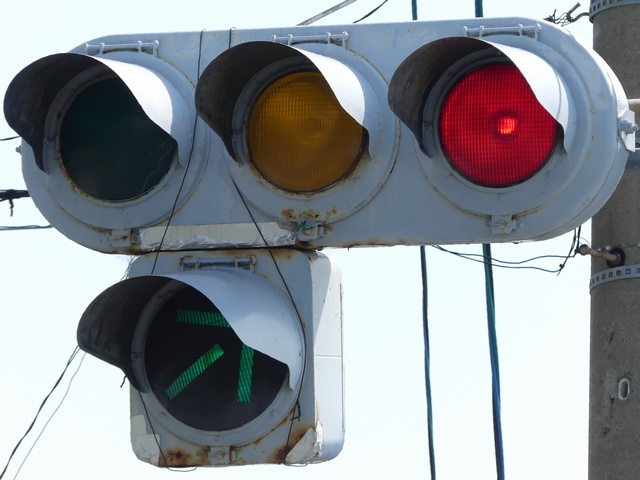 その後、矢印灯器の配置がこのままで薄型灯器に交換されました。