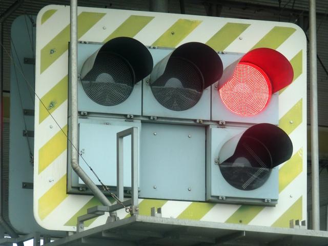 全方向とも主灯器、補助灯器の計2基が設置されています。灯器が両面設置されているため、灯器のメンテナンスは、前面の蓋を開けて行います。このため、灯器の手前には、メンテナンス時の足場が設置されています。 なお、全方向とも、青信号にはならず、矢印信号で交通を制御します。